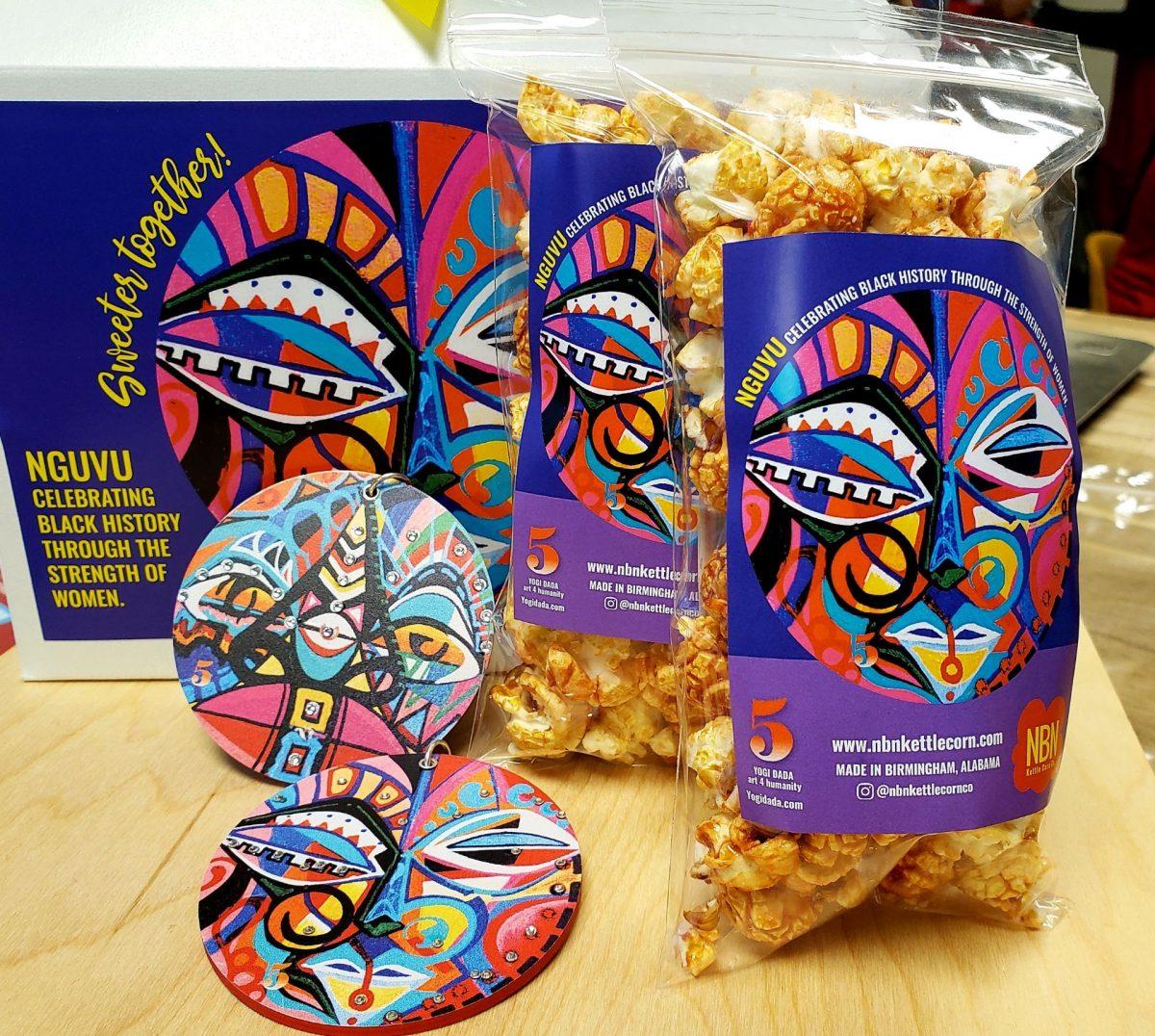 For the month of February, Naughty But Nice Kettle Corn will be collaborating with local artist Yogi Dada to showcase their artwork called “NGUVU” which is Swahili for strength. Her artwork, which resembles a face composed of many different colors, will be featured on the labels of kettle corn bags to promote Black History Month.
