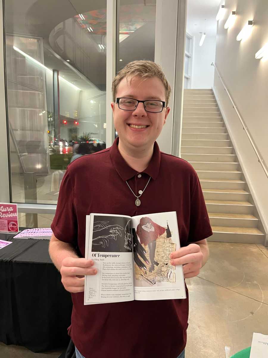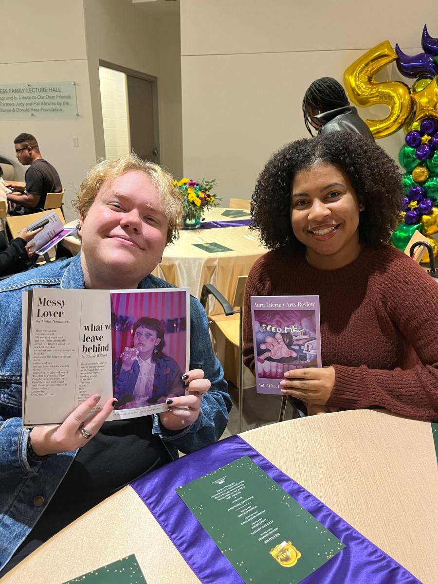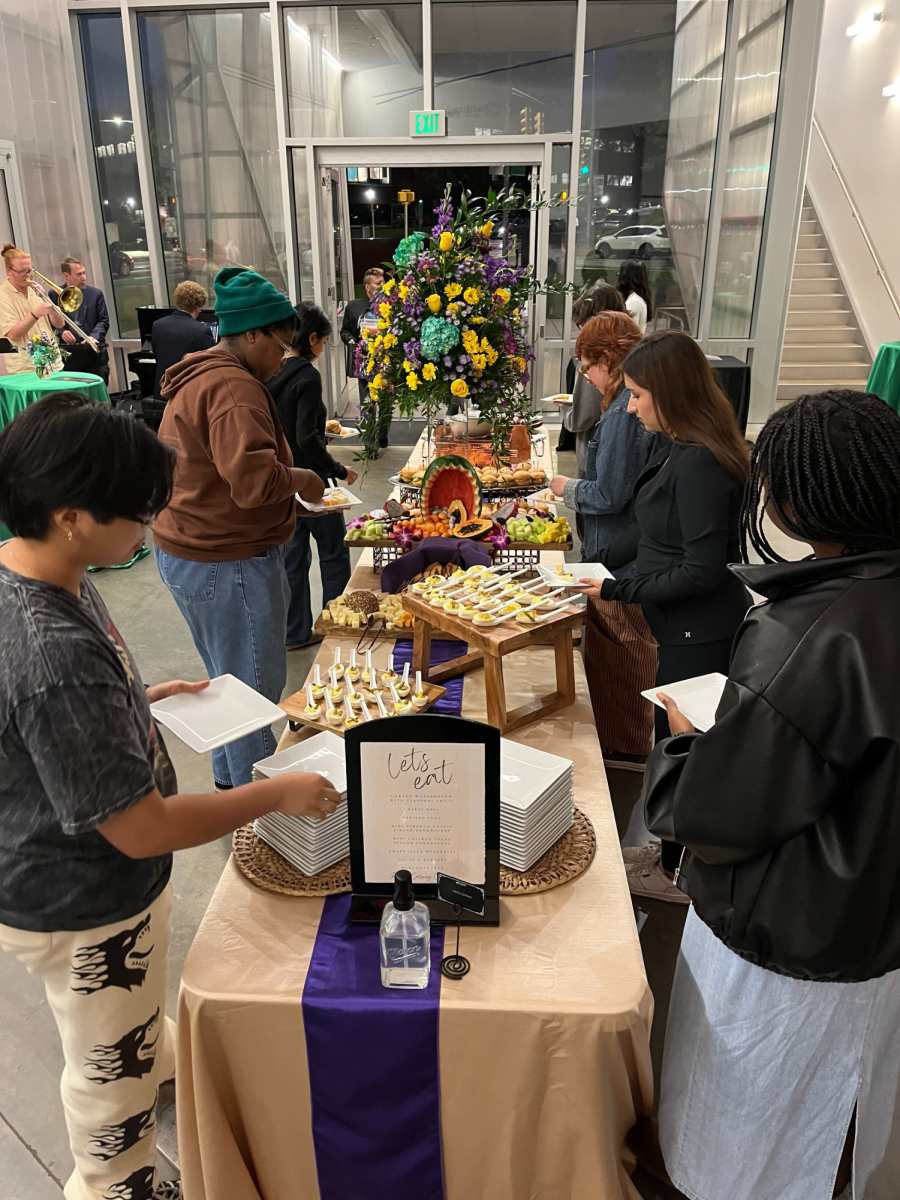 Tonight, Aura celebrated our 50th anniversary with an incredible launch event in the Abroms-Engel Institute for Visual Arts (AEIVA). Guests were treated to charcuterie, custom pasta dishes, fresh fruit, entrees, and soda floats. Copies of Volume 51 Issue 1 were distributed and presented alongside a presentation from key figures of Aura and look back through the previous editions of Aura.